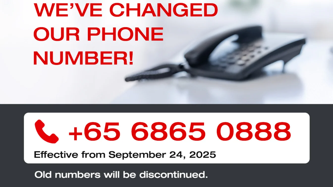 Please update your records as our old lines (+65 6862 1701 and +65 6100 0739) will no longer be in service.